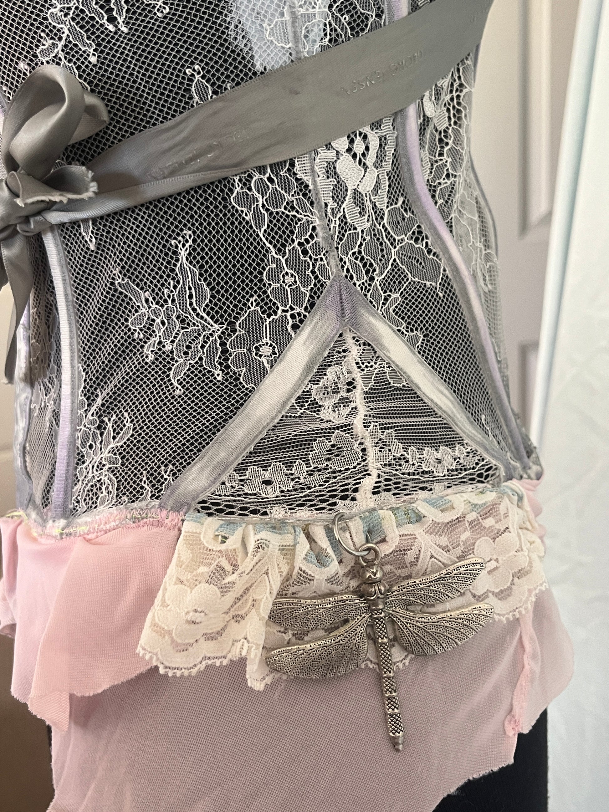 Hand dyed lace and trim + dragonfly charm detail !
